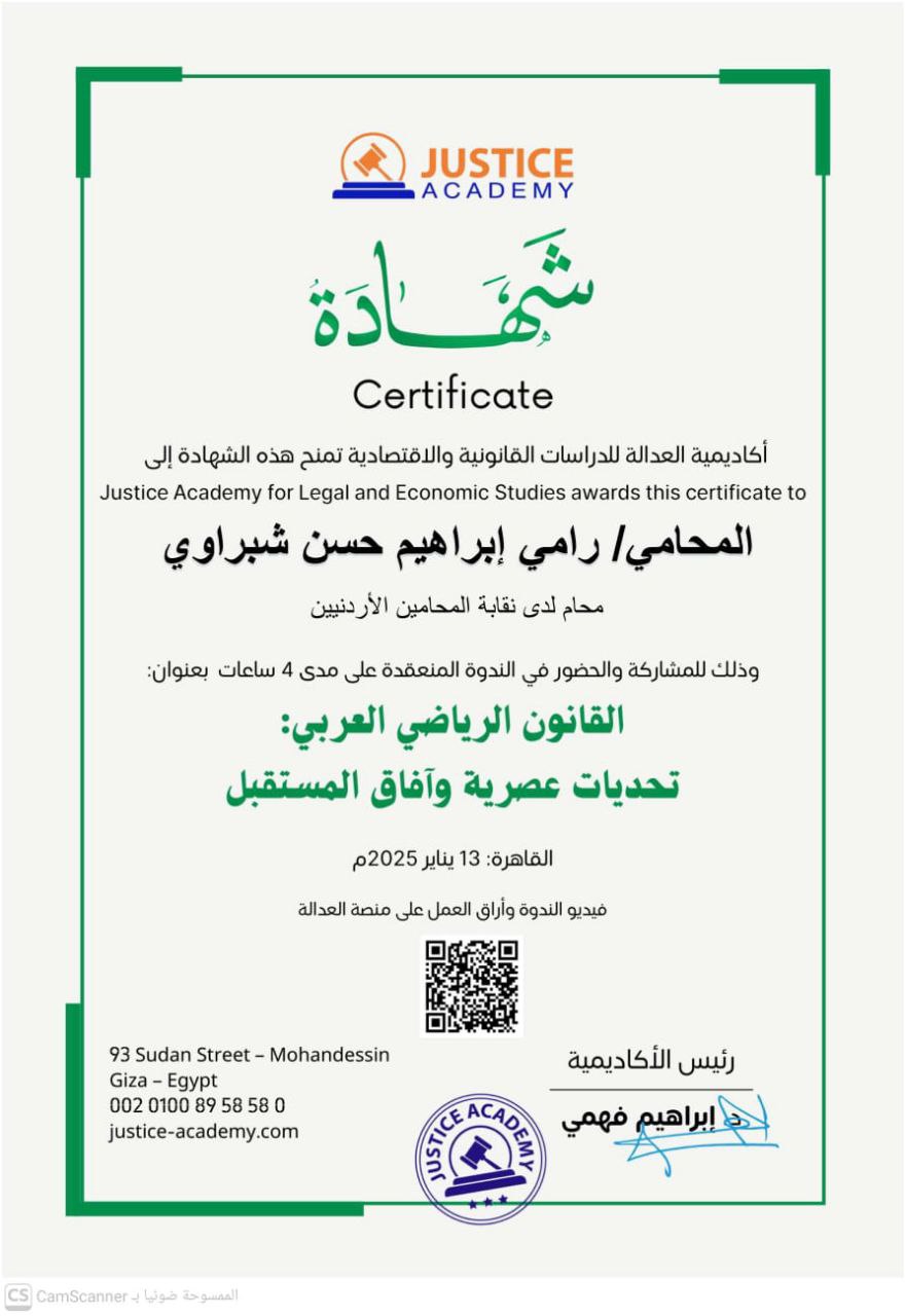 The law office of Dr. Rami Ibrahim Shabrawi is one of the leading legal offices in the Hashemite Kingdom of Jordan, with its headquarters located in Amman - Jabal Amman - Al-Buhturi Street - Building No. (77) - Al-Natsha Complex.